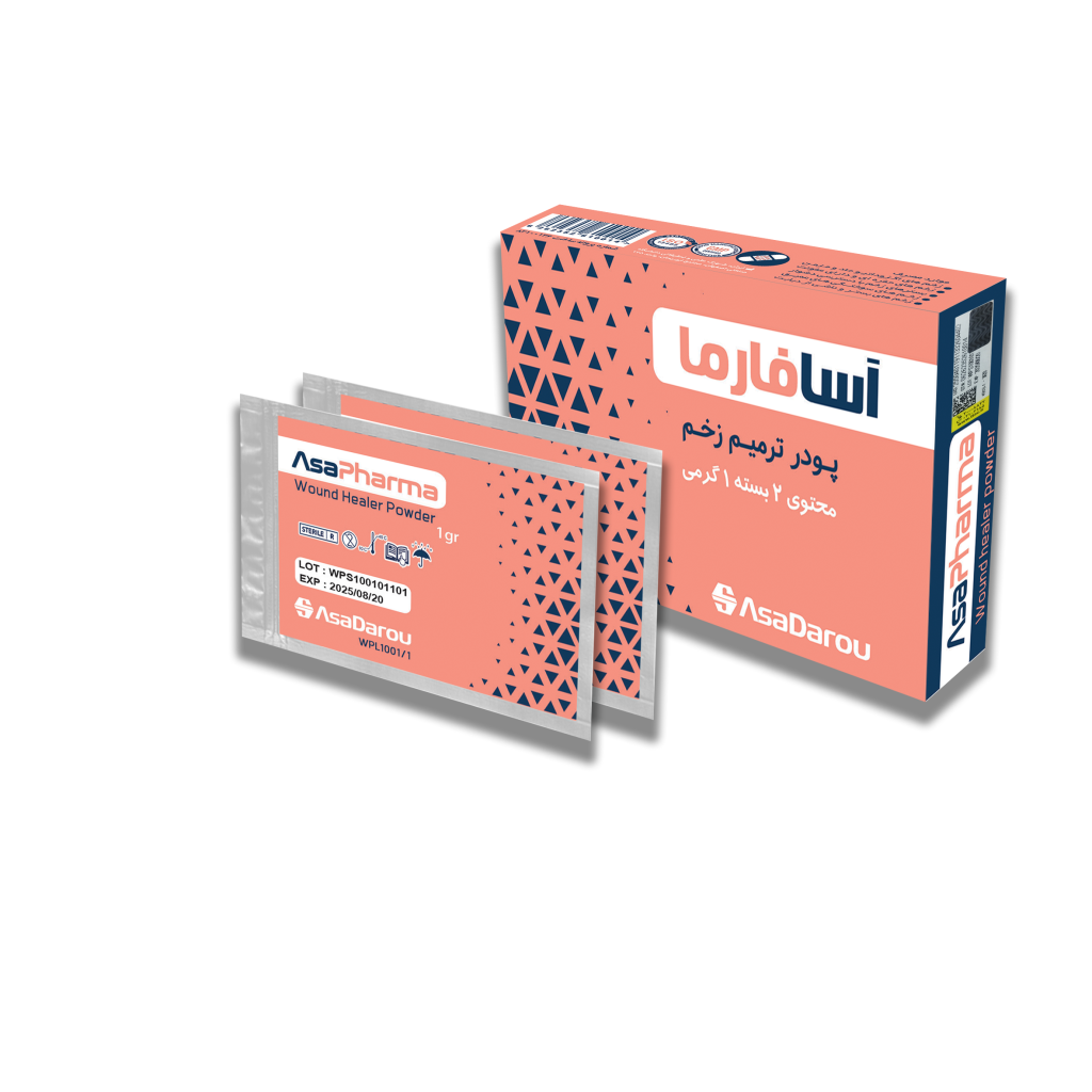 پودر ترمیم زخم آسافارما وزن 1 گرم بسته 2 عددی